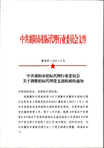 中共襄阳市招标代理行业委员会关于调整招标代理党支部组成 |